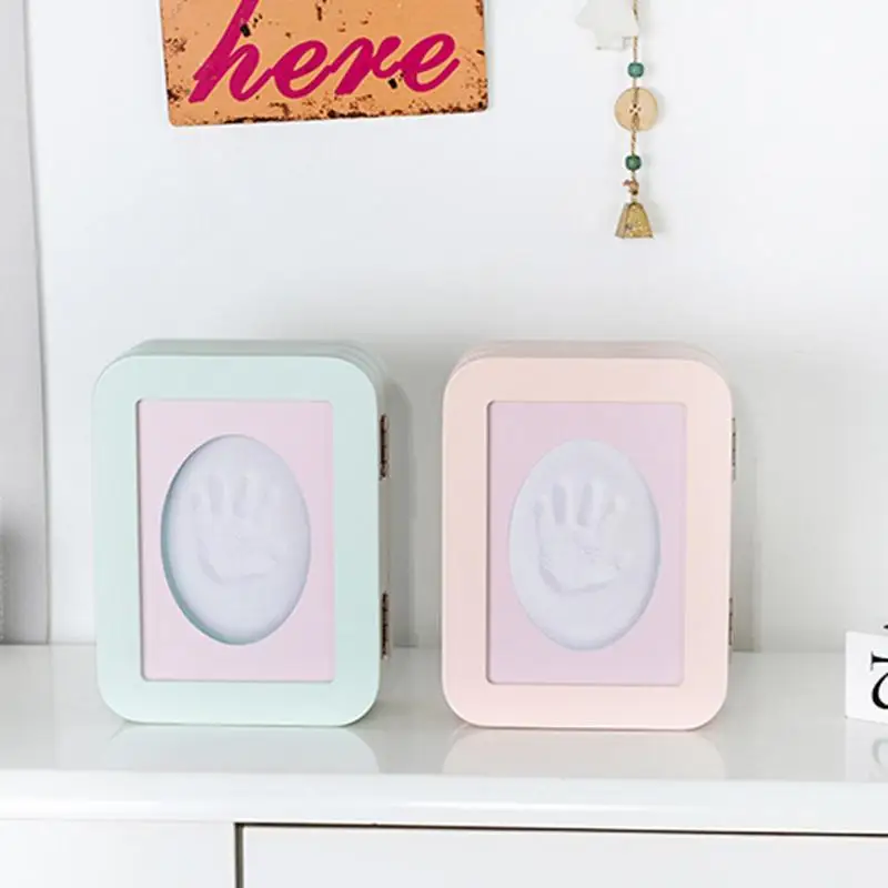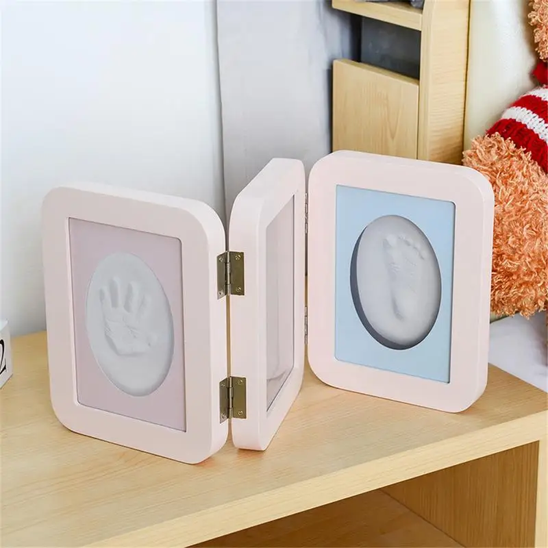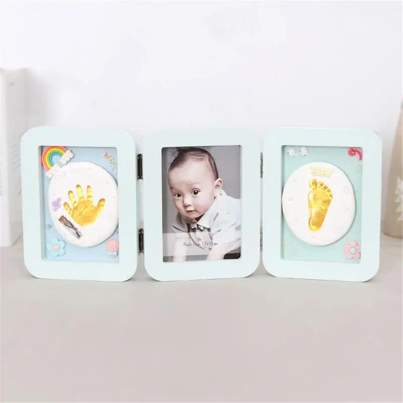 Baby Souvenir Hand And Foot Print Clay Cast Kit Folding Commemorative Photo Frame Baby Hand And Foo