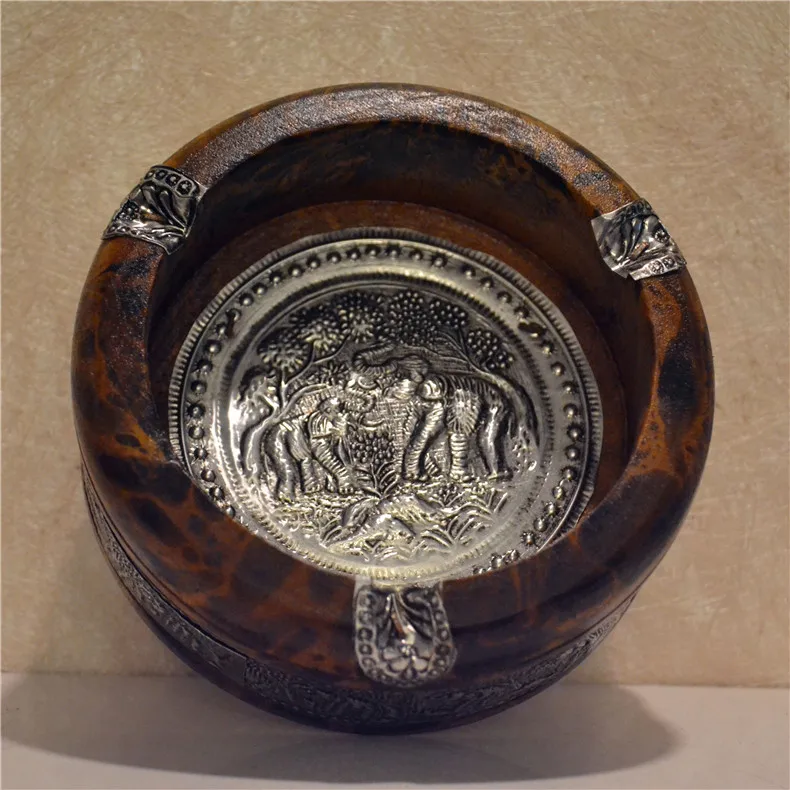 Southeast Asian Style Decorative Ashtray Solid Wood Mango Wood Club House Living Room Thai Tourist