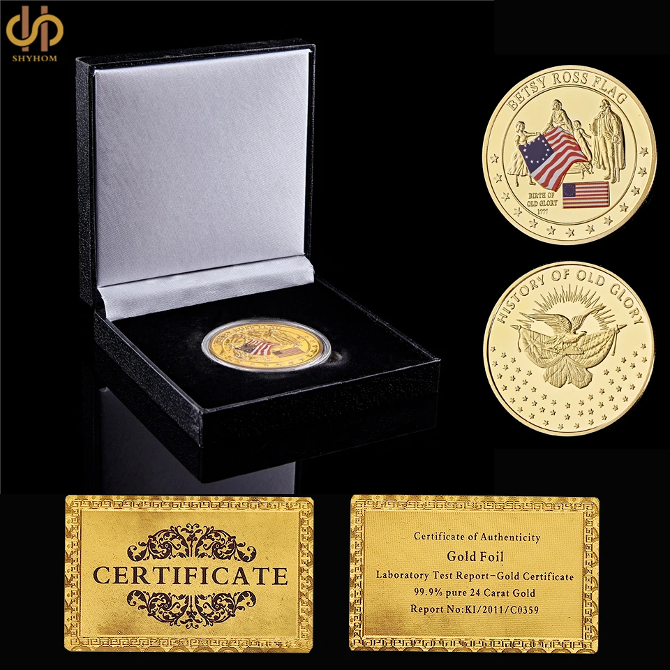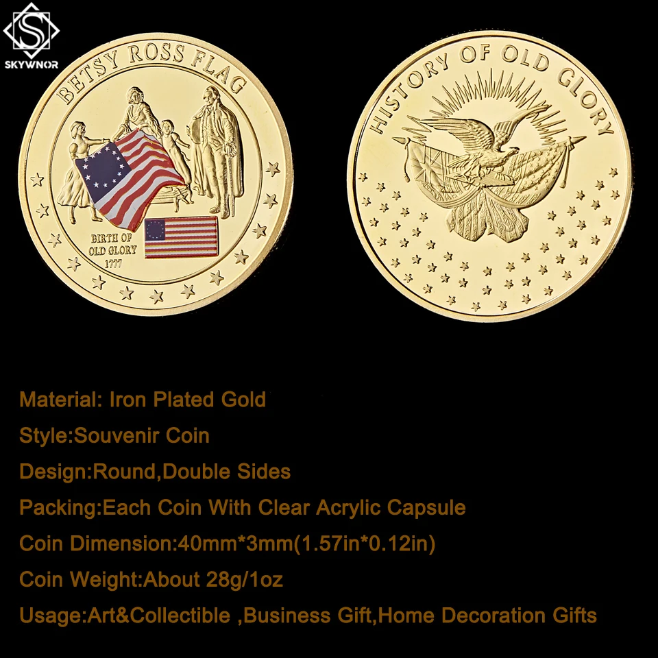 ORIGINAL American Flag Designer Betsy Ross Souvenir Challenge Coin USA Gold/Silver Plated W/ Black Luxury Co
